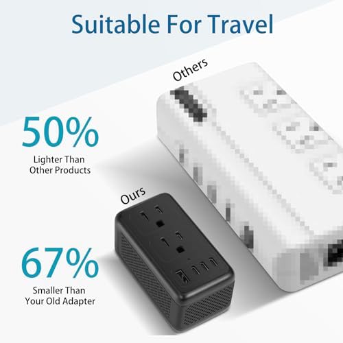 Portable and Lightweight: The power converter adapter combo for worldwide traveling with compact in size (1.8 x 1.8 x 3.9 inches), 67% smaller and 50% lighter than other similar adapters. The Portable size will free up space in your luggage. Packing list: 1* travel bag, 1* voltage converter, 1* Type I plugs, 1* Type G plugs, 1* Type C plugs.