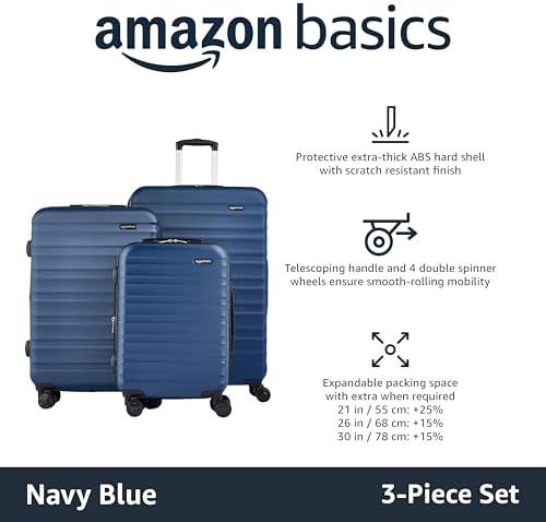 This large rolling suitcase with wheels features a durable, scratch-resistant navy blue hard shell, providing reliable strength for all your journeys. Whether you’re embarking on a long vacation or a quick weekend getaway, this luggage set offers ample packing space with the convenience of expansion for up to 15 percent more room. The structured design of these hard shell suitcases keeps your belongings protected, while the fully lined 150D-polyester interior, complete with multiple zippered pockets and a divider, keeps you organized on the go. Moving it around is effortless, thanks to its four double spinner wheels that provide smooth and agile maneuverability in any direction.