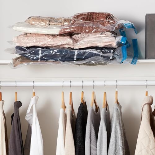 12-pack of assorted size vacuum storage compression bags for storing off-season clothes, towels, linens, and more