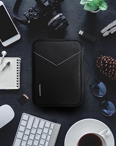 Storage Capacity: This travel electronics organizer is designed with multiple pockets and various size of elastic bands providing great flexibility for organizing electronics accessories such as USB cables, stylus pens, flash drive, wall charger, SD card, Hard Drive, Power Bank, Earbuds, It is the answer to your audio/video/power cord storage problems, With tablet compartment suitable for iPad pro, kindle