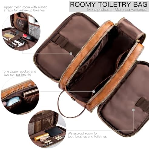 Elviros Travel PU leather Water-resistant Multifunctional Toiletry Bag