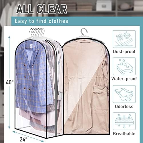 【All Clear】Full clear waterproof PEVA material helps you see what’s in each wide garment bag for storage easily and pick out the clothes you are looking for without any fuss. If it is dirty, wipe it off