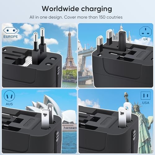 International Compatibility: This Travel adapter includes 4 plugs that cover over more than 150+ Countries in US/EU/UK/AU/Asia, such as France, Spain, Canada, Thailand, Japan, Ireland, New Zealand, Rome, China, Australia, Hong Kong, Argentina, Peru, etc.