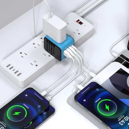 Built-in Smart IC: SAUNORCH Universal Travel Adapter built in Smart IC Chip, intelligently recognizes your devices, adjusting the right current output automatically, boosts its charging speed, allow simultaneous charging your devices at high speed.