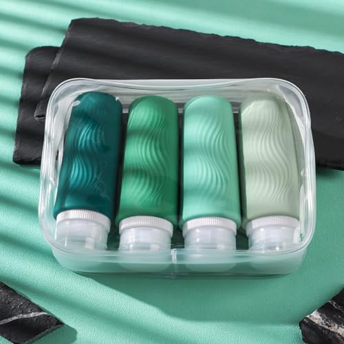 TSA carry on approval: 4 pack 3oz silicone travel bottles, very suitable for shampoo, conditioner, shower gel, lotion, hand sanitizer and shower gel. It is equipped with a high-quality zipper transparent wash bag, which saves space and allows you to travel long distance freely like a professional.